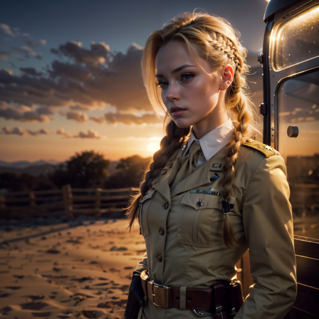 #ai #armygirl #gimp #skirt #soldiergirl #uniform #armymilitary #gimpphotoshop #aigenerated #stablediffusion #bellybutton #croptop #desertlandscape #gingergirl