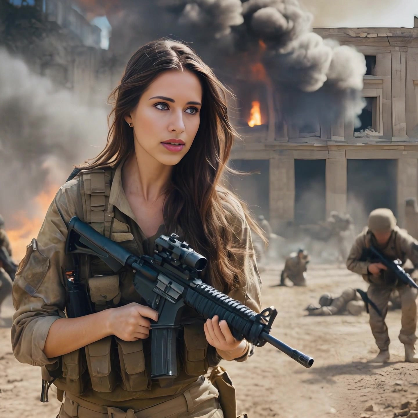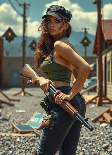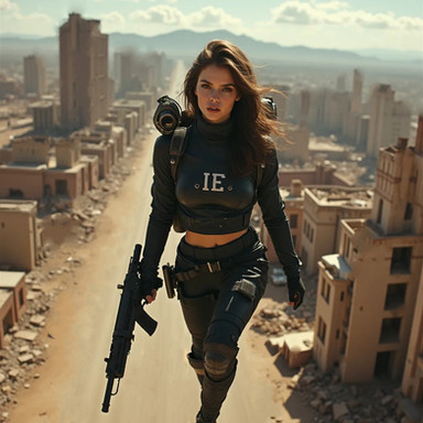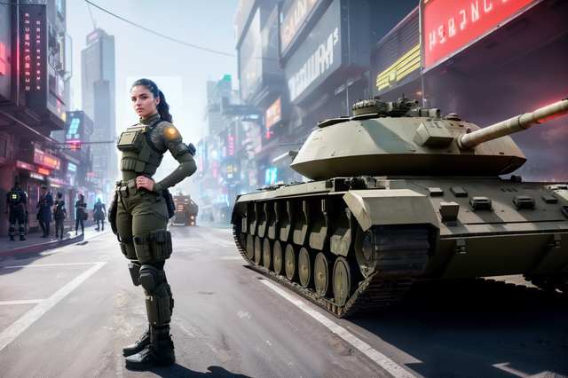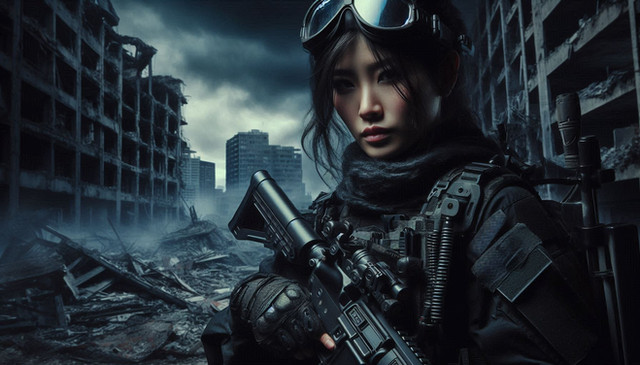 #ai #futuristiccity #gimp #ponytail #rifle #soldiergirl #uniform #armymilitary #tacticalgear #aigenerated #stablediffusion #dystopiancityscape