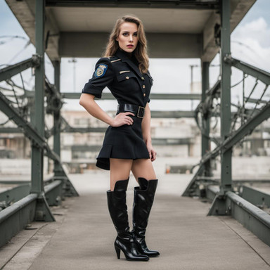 #ai #boots #gimp #spook #uniform #gimpphotoshop #intelligence_officer #aigenerated #stablediffusion #operative #sexylegs #shortdress #soldiergirl #armymilitary #laptopcomputer