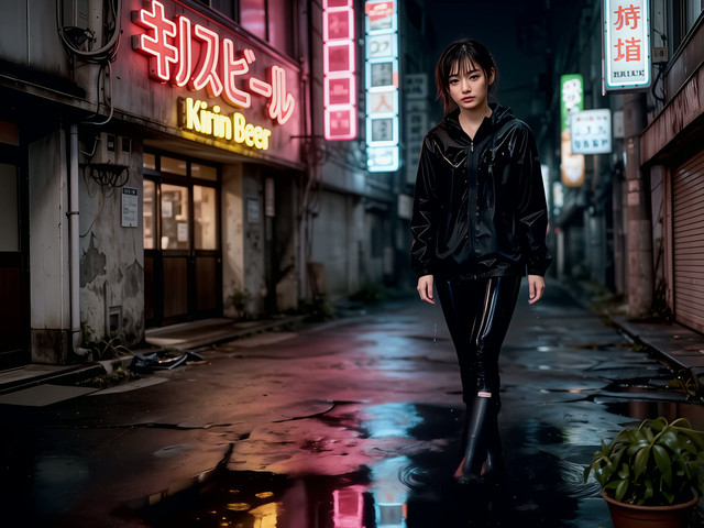 nlzero - Cyberpunk Goth Girl, Neon Lit Alley [🤖]