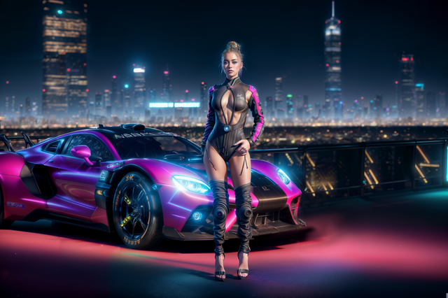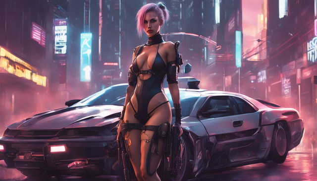 #ai #cleavage #cyberpunk #gimp #hotpants #overkneeboots #gimpphotoshop #aigenerated #stablediffusion #sportscar #rosesflowers