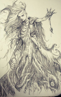 So haunting, imaginative, almost mesmerizing. An excellent composition, especially in the contrast between the character's youthful appearance and the eerie, greenish tones of the figures surrounding him. It captures the eye and makes you wonder what's the story behind it. Faved!