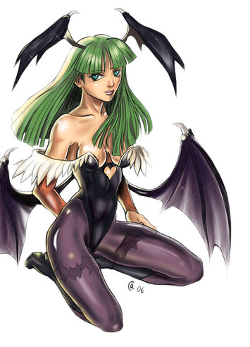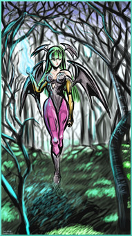 Morrigan Wakes up to another night of fun.Penciled, inked, then coloured and enhanced on computer on GIMP.
