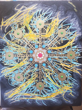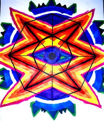 Face is made of three 9 pointed stars while the body is made from one 9 pointed star. This is painted on the door of my enclosed 12ft trailer. It is also black light reactive.Edit 2023: Lost my trainer in a divorce in 2019. Have made this on canvas since then.