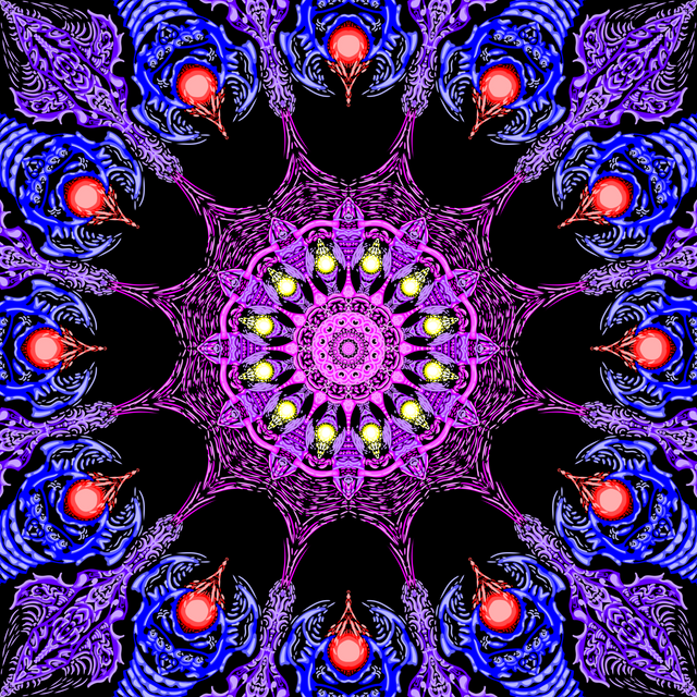 Drew this on a 30x30 canvas then used ps and painter to add in colors before I paint this on the canvas. This is the final version. I may add black highlight in the center but it takes away from the brightness from far away so I may leave as is.Related content