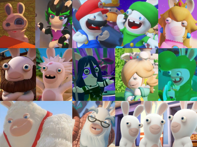 today for character of the month is raving rabbid.here are the evolution of rabbid from these pictures.