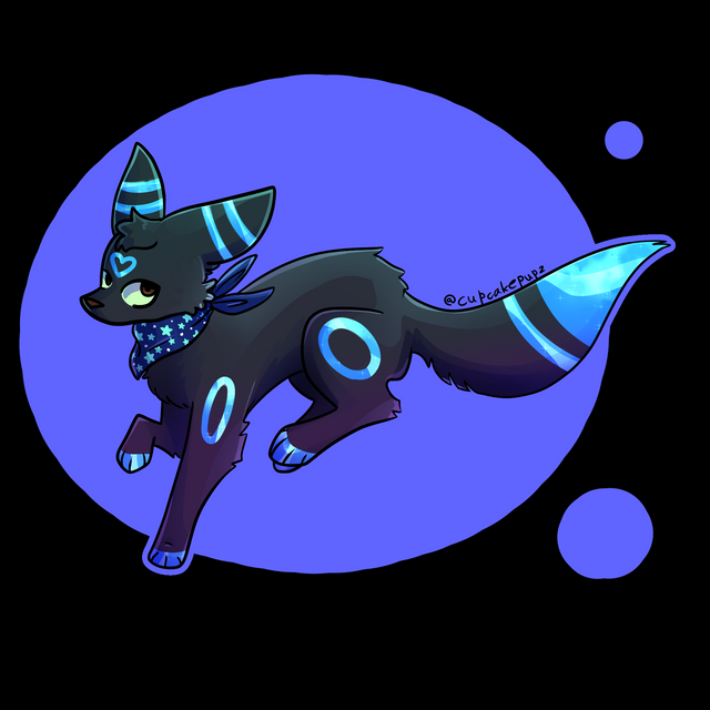 a cute drawing of a shiny umbreon wearing a pokeball bandana, I'm still really psyched about the pokemon GO eevee event and I'm excited to evolve my shiny umbreon!! I think shiny umbreon is just a really cool shiny quite honestly, it's one of those that I like a whole lot >;3cumbreon is one of my fave eeveelutions! ofc the design doesn't belong to me, but the art does = w = b !!