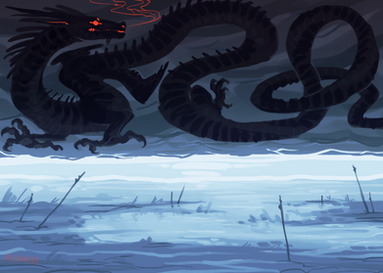 #dragon #creature #cathedral #character #commission #draconic #ruins #winter #wyvern #fire