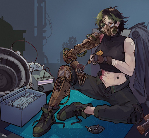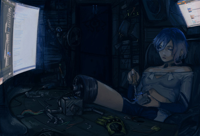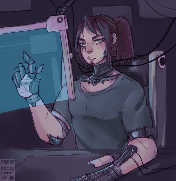 I asolbutely love how you designed the prosthetics. the exposed servos look reeeaaaaaaaaallllly good. You also did vey well on the computers, they look advanced, but not overboard with it.