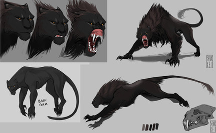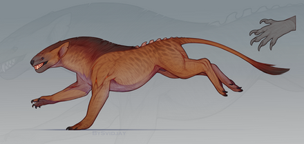 predator, built for speed, able to stand one 2 legs, strong jaw (swallows the prey rather than chews), grabby hands, and all in all a mix between feline, bear and dragon-features