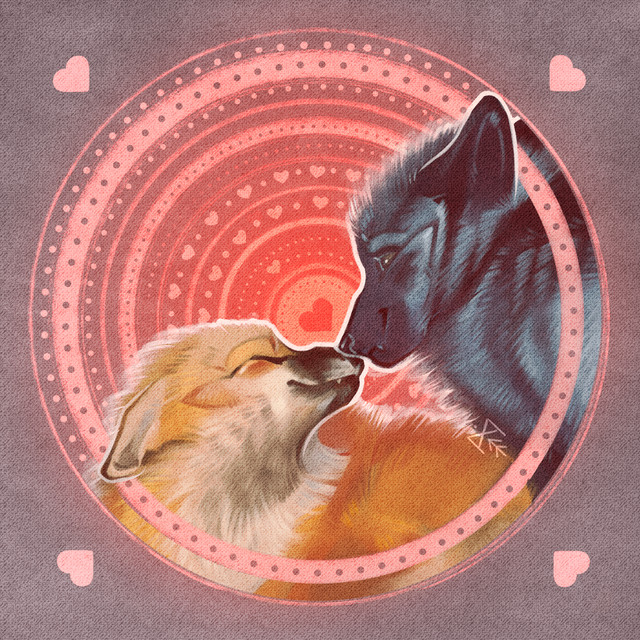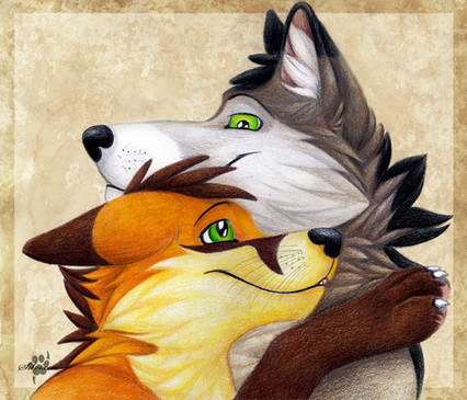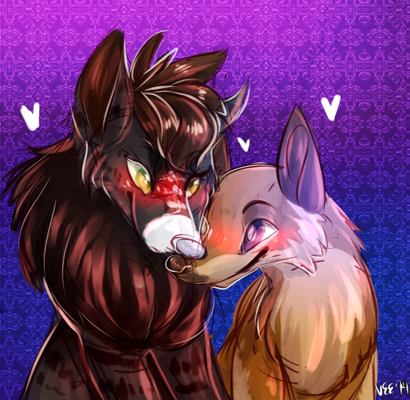 well, as I said, I wouldn't be able to draw canines....kissing like humans do, because they're canines ...I would've have to draw in a more comic-like way to draw 2 animals kissing, but I'm not good at comic-style and I fail at drawing kissing humans btw :I so I'm sticking with licking, I guess you could call it a kiss with tongues