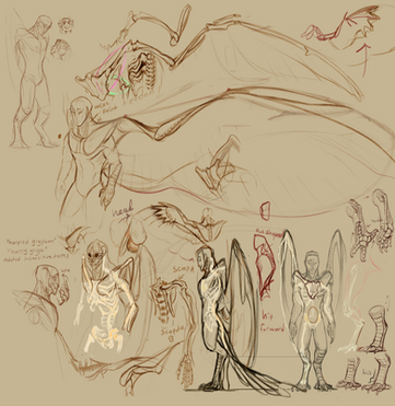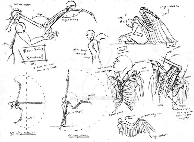 Just knowing vaguely where muscle-bulges are located, can make your wings look a lot more solid, and do not underestimate the importance of shoulder/back muscles. You often risk making the wings look detached from the main body, to avoid that, you can copy the way a normal arm is attached to a human shoulder. and tadaa there you have additional limbs