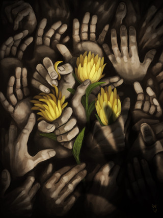 #black #creature #flora #flower #hand #hands #human #humanoid #ink #mortis #plant #sun #sunflower