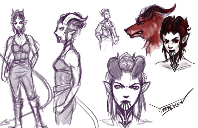 I actually really like these designs, especially the sharp canines and slightly pointed ears. I also really like the face paint and orange eyes, they make her look otherworldly and dangerous while still keeping her feminine beauty.