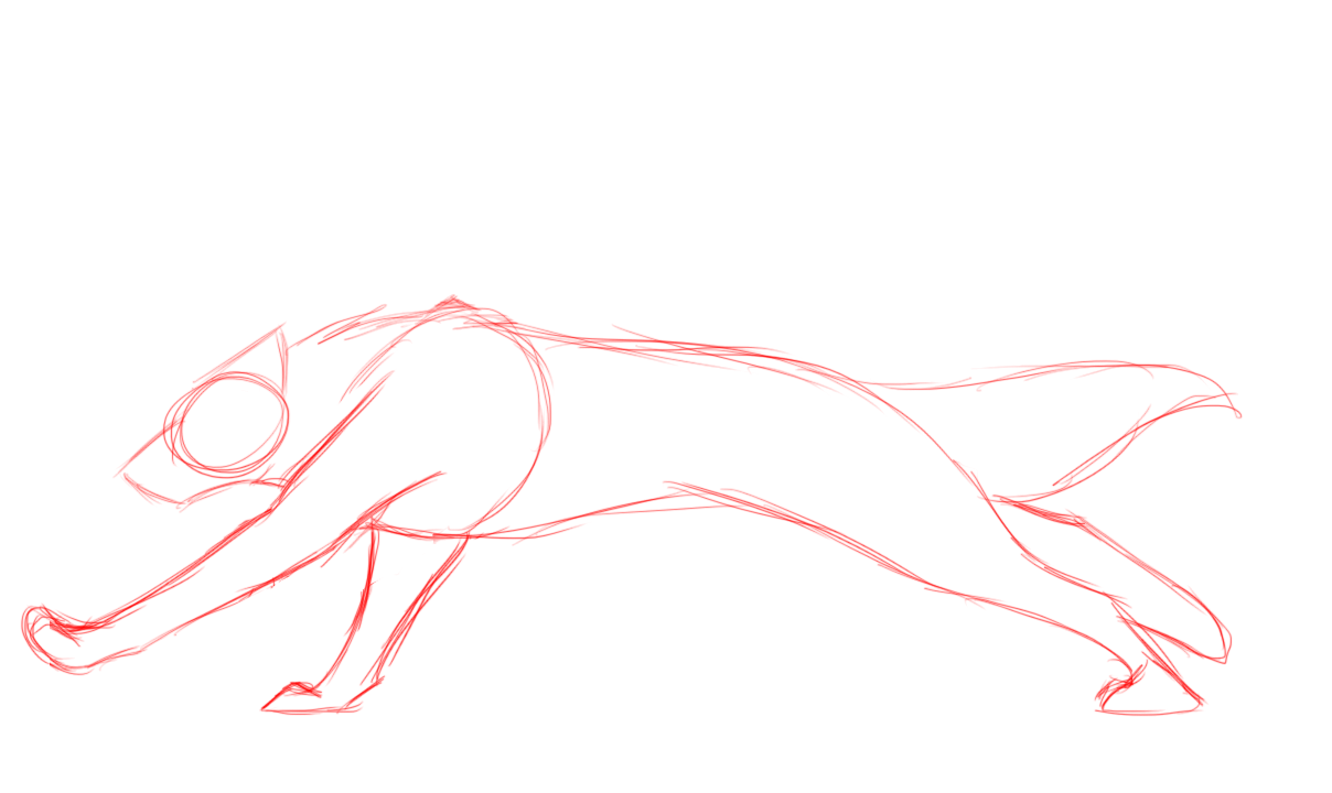 When I get to doing the lineart of the last camera turn, I'll distribute the turning motion more evenly,, ground and background will also need some looking after >:T I still gotta get used to doing things in separate run-throughs, like after the wolf is all done, I'll have to go back and correct ears and muzzles to make them all even