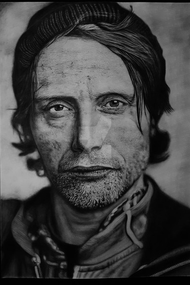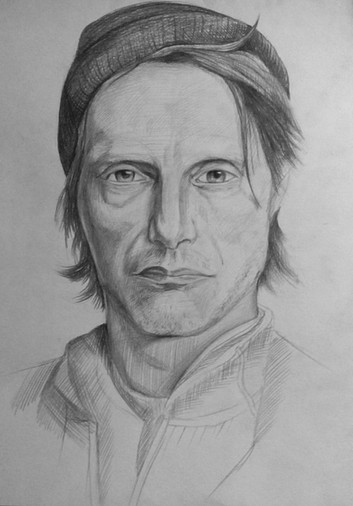 Completed A4 drawing of Mads MikkelsenFull view is best view
