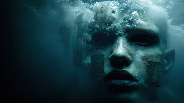 #photomanipulation #15 #ai #dreamlike #surrealism #turquoise #underwater #с #для #как #abstract_portrait #text_art #digital_manipulation #word_art #conceptual_art #face_portrait #_ #теги #штук #раньше #surreal_portrait #fish_swarm #symbolic_art #typography_art #elegantmelancholyrealism #многословных #teal_aquatic #letters_in_water #ocean_of_words #submerged_face