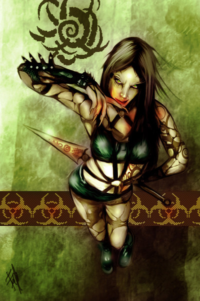 This is a beautiful character and a wonderful design!Β That scar looks vicious over her hair!Β Nice!