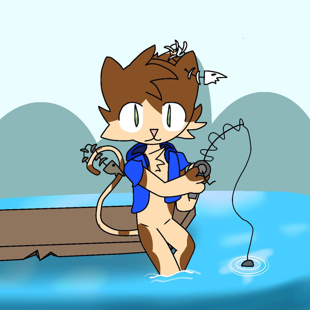 #anthro #cartoon #cat #feline #fish #fishing #glasses #happy #hybrid #lake #mammal #outdoors #tiger