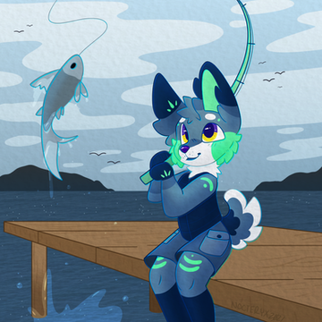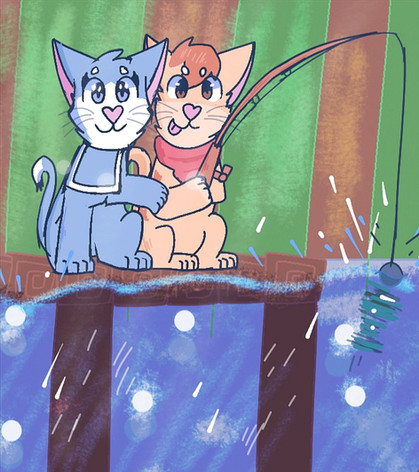 I really enjoyed the way I made the previous drawing, so I made another one, I think I will start making more like these, really fun to make.This time featuring Remy, my Tiger/Cat (tigercat?) sona, having some fun fishing