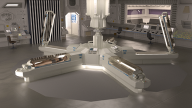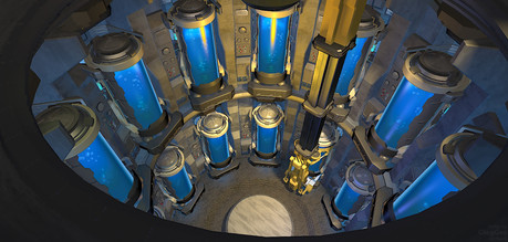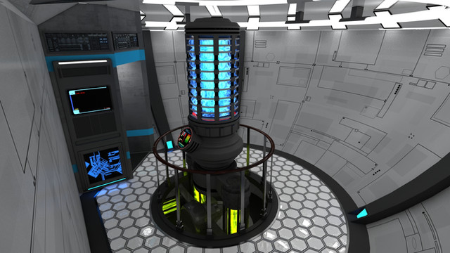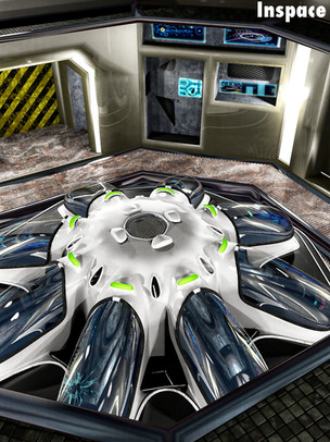 This is what happens when Inspace attracts attention. Coffeeboss walked up and went "wow" to this, "huge improvement...looks real." We went over this a couple times and then I ran with his ideas for this final version. Things like "no cast iron parts," "less grunge, this is not in a tidal pool," and "the pods should look medical and clean" all came from his feedback and he was right.I still kept some of the original blue-white motif in this image, the green-lizard skin floor tiles have been blasted out of the airlock, and this still has a slight amount of grunge and "thrown-together-ness" while putting shiny sheet metal over everything to cover the shoddiness up - which is what I wanted. This is a colony ship but it isn't perfect and not all the pieces match since it was thrown together out of disparate pieces of ships and station parts by for-profit space contractors. It doesn't burn your eyes out looking at it, and it should go a lot better with characters now.
