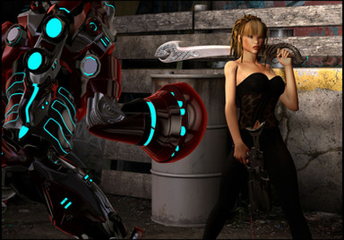 NOTES: Sparrow is such a fish out of water. Technically, she is still on the good guy's side, but she threw in with EVIL once everybody was attacked. She still has that loyalty to Alva, and worries about her team-mate to the point where she would rather go off alone and find her. It is a rookie mistake, and even the Overlord knows he needs to do something to convince her, even taking off his mask to establish that bond of trust. EVIL being evil, it doesn't work all that well. A fun shot, and another technically demanding one because of the scene complexity.