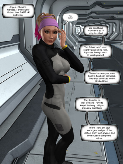 A very tight, fun series of events here, and Shade's reaction is fun - she doesn't know what to think back there. Eli is trying her best to fight back by being smart. Was the resume thing a trick by Eli to make Relay just as culpable in hacking the drone? Eli knows all too well about the danger of Relay's automatic updates, so that may be another weapon she is using in this fight - she knows those will auto download and apply.At the root of it, Eli is just trying to get Relay's help in wiping the drone's logs - but does she need to? Could she do this herself? Smart readers will notice another layer to this all and I am starting to wonder if Eli isn't social hacking Relay to make her more cooperative - without brute force hacking Relay's systems.