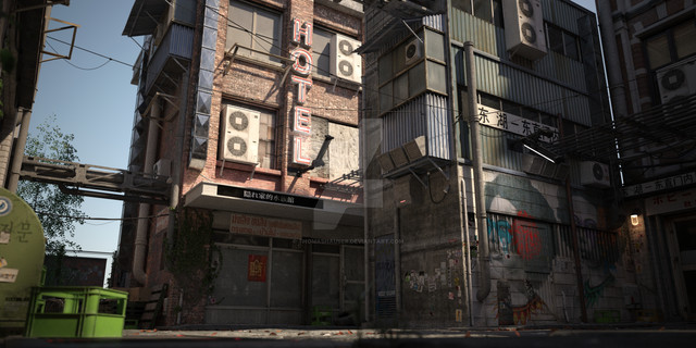 I have been doing more pipeline work with Blender and it is paying off. This is a Kitbash3D Blender file exported (one group) into the Collada format (which I helped work on for DAZ), and then into DAZ. I could probably render in Blender and composite, but I am doing pipeline work so cross compatibility and getting "X into Y" is my goal, and it also gets me practice with Blender and creating these types of environments myself some day and doing my own thing.