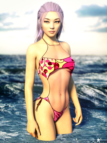#3d #asian #bikini #female #hot #ocean #tropical #wading