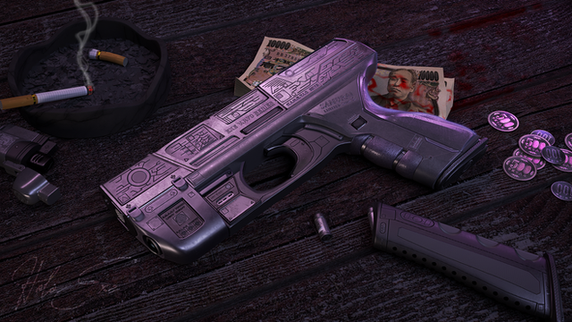 The unused ammunition, the skull decorations on the handles and the smoking cigarettes make for a very good look