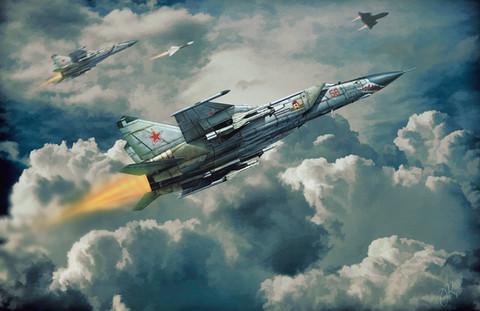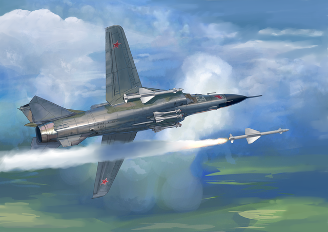 I used to read about the Soviet Cold War aircraft while details were still secret: the U.S.'s planes were titanium or new, secretive alloys intertwined with revolutionary technology and avionics, some of the USSR's were stainless steel and just modified and recycled systems, yet often the USSR's aircraft oudid the "superior" U.S.'s just the same with what seemed to me just brute force and the will to succeed. That's what this image reminds me of-a tough, brutish aircraft. Very nice job!
