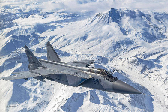 Soviet long range heavy interceptor-fighter MiG-31B "Foxhound" performs attack with R-33 missileRelated content