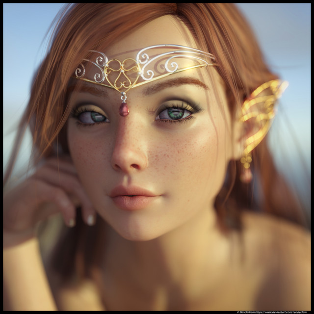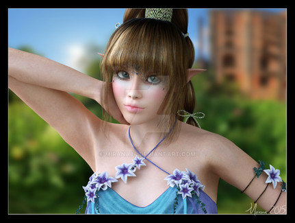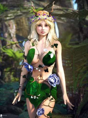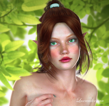 Thanks. Colour palette was probably most work, lots of changing the materials about to get the summery feel I wanted. I thought the gold was a bit too clashy with her hair colour, but nothing else worked as well with the green leaves and the emmissive gems. Thankfully I have heavily invested in products to make such changes at will.