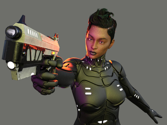 Wasn't sure where I was going with this. I just needed to see more Black women in mech suits so that's what I did. Her expression and pose were an after thought but it all vibed together nicely.