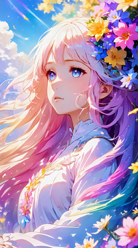 #anime #animegirl #digitalart #wallpaper #beauty #dress #aesthetic #cherryblossom #colorfulhair #dynamicpose #ethereal #floralart #flowinghair #longhair #originalcharacter #petals #rainbowhair #waterart #whiteclothing #whitedress #mobilewallpaper #naturebeauty #flowerineye #sakurabloom #springvibes
