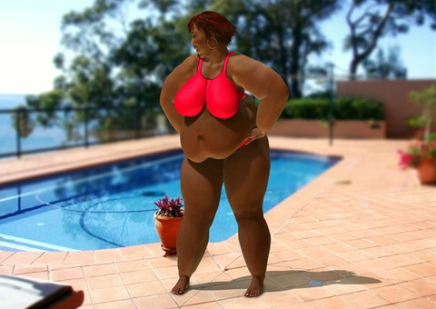 I see a mature woman, likely in her 60's, who is confident enough in her natural endowments, to still wear a two-piece bathing suit to the pool, and who can still conjur up lustful desires in men ranging from teenaged boys, to senior citizens. Beautiful!