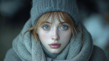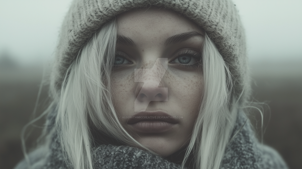 #female #freckles #girl #intense #petite #redhair #scarf #snow #uhd #wallart #wallpaper #white #widescreen #woman #aiart #artcommunity #digitalartwork #artworkdigital