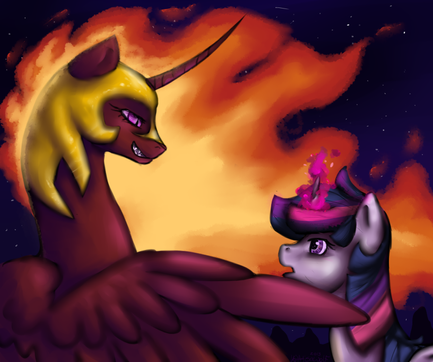 So I guess I thought of what it would look like if Daybreaker escaped the dream realm somehow and met Twilight
