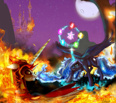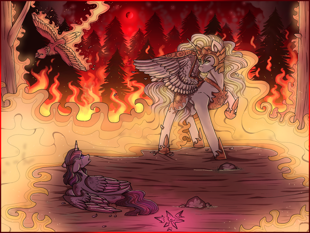 Oh yeah and she also set Canterlot on fire because of the whole "Destroy anypony who stands in your way" thing, obviously