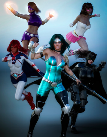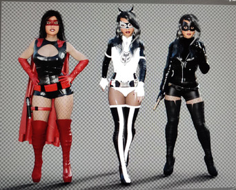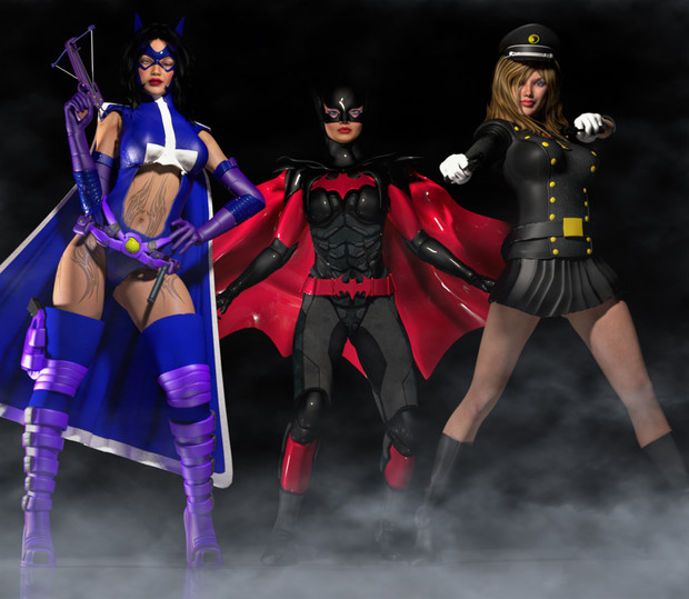 After some high profile wins and some even higher profile losses, the Super City Seven decided on a global recruiting drive to bring more heroines into the city to do battle with the growing population of nefarious villains.From left to right: Mariquita (from Mexico City), Long Bow (from London), and Civet (from Lagos). Mariquita is very fast and an empath, Long Bow is obviously an archer, and Civet is nimble, strong, and she secretes civet oil which most people find absolutely alluring and irresistible in small doses.