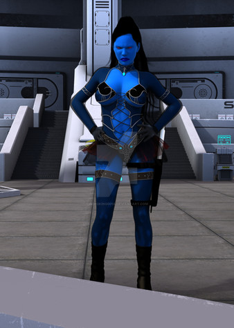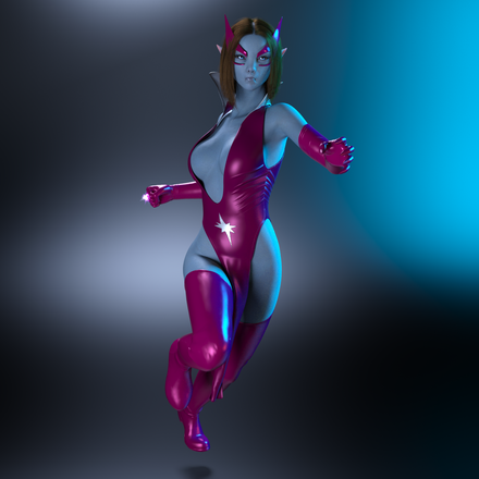 Well, she looks just fine. Blue heroines are nice, like Raven.
