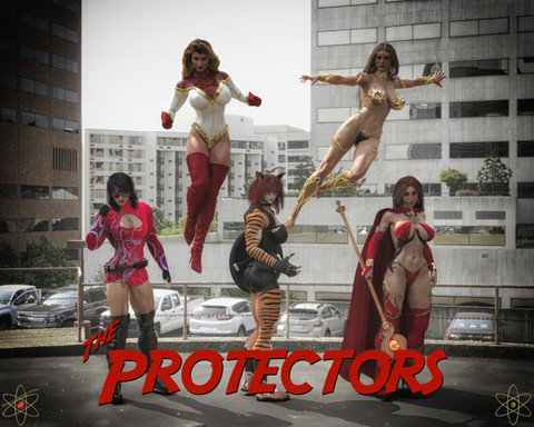 Dynamic group action shots are absolutely A Thing. Ooh, Cat's suit is very nice, I like the red patterning. I always think bodysuits are at their best withaΒ nice pair of gloves finishing them off but that's a personal thing, it's a really cool action hero look Xysta's Magic Sword of Stuff Smashing looks terrifying, and always nice to see Cardinal in action, she looks really cool flying towards the camera