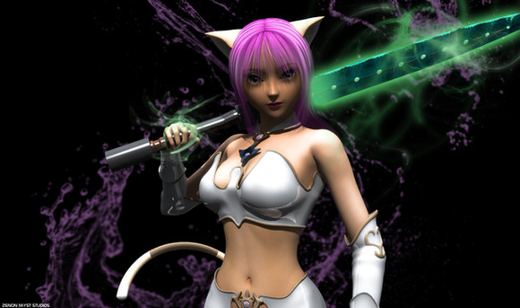 Some weeks ago I spent an evening to play with the Purr-Fect outfit for Aiko 3.This one was my 3rd render and I think it's the best between the 3 scenes I did.