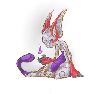 Wow really cool design He looks sort of catlike but that's neat! I am really pleased with the fact that he isn't too cutesy or girly here. Though his body design is very simple (I mean in general), he still looks powerful. Kudos!