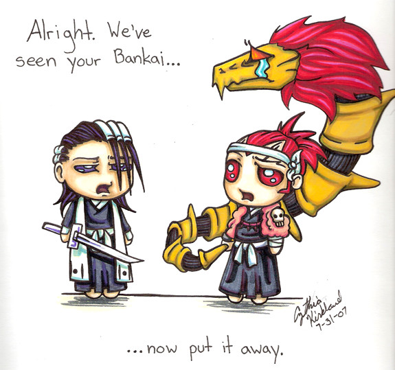 anyway... that's cute yeah, makes imagine Mayuri like 'I need to stab something!' kinda realist I assume...