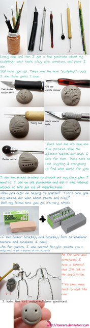 cool! im trying my hand at simple chibis right now but im getting agravated im using regular grey clay and it makes a mess everywhere and i also cant get it to stay together even with supports. with scuply just plain sculpy is it the same as working with clay just not the mess and the falling apart if you bake it? sorry for the onlot of questions just trying to get my head around this whole thing! haha