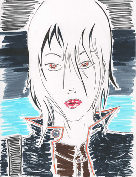 An OC of mine. She grows natural pink hair and she sells it, sometimes donates it. She is the only person with natural pink hair.Media: Crayola markers, black ink.