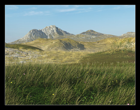 Probably one of the most realistic Vue renders I've seen in ages. Sure the terrain and atmopshere is good, but I like most the look of boulders covered in grass up close on the hillsides, I dread what the polygon count was