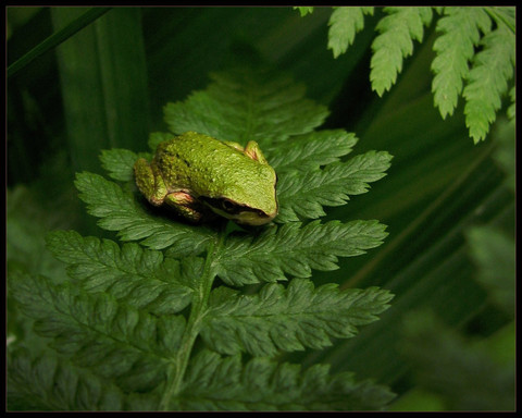 Look at him! I had to post this... That little tree frog is so cute XD I was surprised that after a while he stayed still for a photo...~Taken by me~