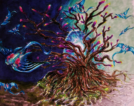 This chapter will be mostly digitally colored traditional pen and ink drawings that I did about 20 years ago! It is appropriate that the "Origin Story" has a more vintage look to it.